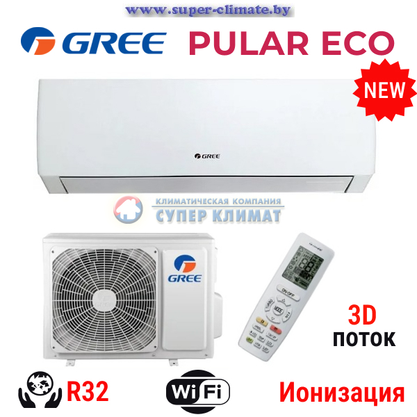 Новые настенные сплит-системы серии PULAR INVERTER ECO R32 от Gree сочетают в себе классический дизайн и отличные технические характеристики. Модельный ряд представлен устройствами производительной мощностью от 2,3 кВт до 6,4 кВт. Сплит-системы этой серии обеспечивают максимальную эффективность при минимальном энергопотреблении, имеют инверторный компрессор постоянного тока нового поколения и революционный фреон R32. С помощью встроенного WI-FI модуля можно управлять приборами удалённо через планшет или смартфон.