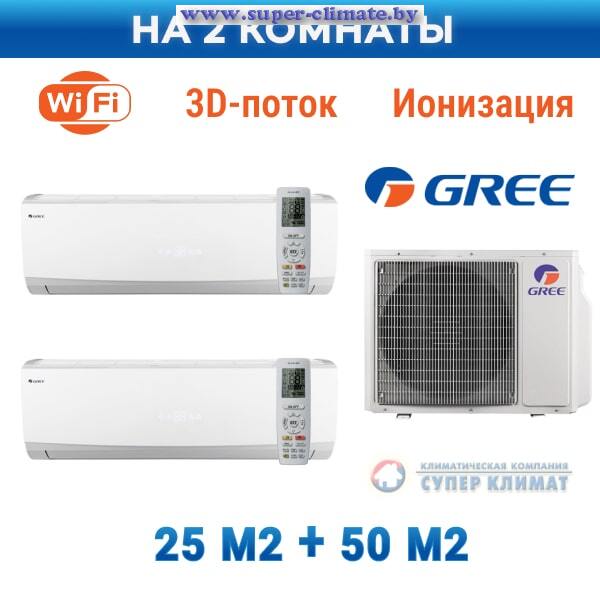 Мульти сплит-система Gree LOMO Inverter на 2 комнаты 25 м2 и 50 м2 с Wi-Fi