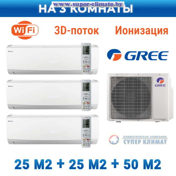 Мульти сплит-система на 3 комнаты Gree Lomo Arctic Inverter