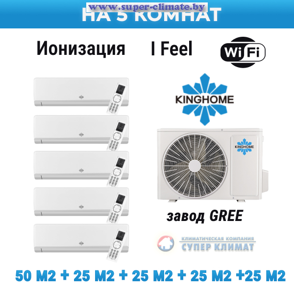 Мульти-сплит система Kinghome c 5ю внутренними блоками Cosmo Inverter позволяют экономично создавать необходимые климатические условия на любых объектах - квартирах, загородных домах, офисах. Наружные блоки новой серии Free Match Plus обладают более высоким коэффициентом сезонной эффективности охлаждения SEER. Благодаря этому повышается энергосбережение. Конструктивные изменения, внесенные инженерами, позволяют увеличить длину трасс фреонопровода и увеличить разницу в высоте между блоками, что упрощает установку систем, а системы Multi Free Match Plus могут устанавливаться на сложных обьектах.