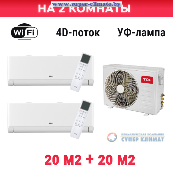Мульти сплит-система TCL на 2 комнаты 20 м2 и 20 м2 со внутренними блоками BreezeIN серия TPH11I