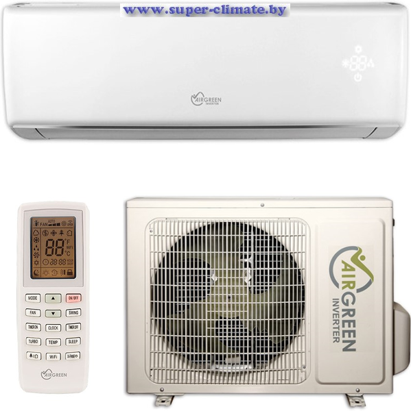 Наружный блок сплит-системы AIRGREEN IG2 оснащается высокоэффективным инверторным компрессором производства завода Gree .