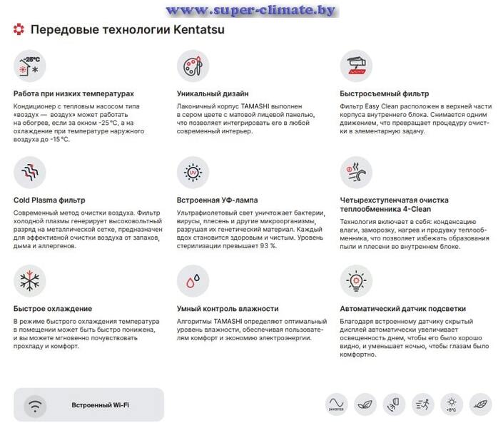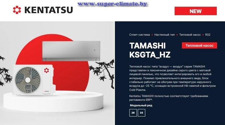 Особенности кондиционера (тепловой насос) Kentatsu KSGTA26HZRN1 - KSRTA26HZRN1 серия Tamashi