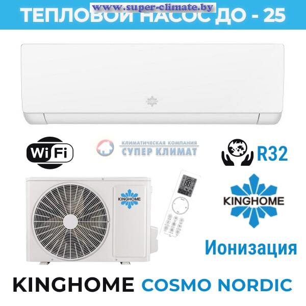 Особенности теплового насоса Kinghome KWH24AWEXF-K6DNA1A серия COSMO NORDIC inverter Новинка в мире тепловых насосов воздух - воздух Kinghome серия COSMO NORDIC inverter! Энергоэффективный обогрев зимой для дач, загородных домов и офисов. Модель со встроенным вайфай модулем для дистанционного управления климатом. Класс энергоэффективности А+++/А++